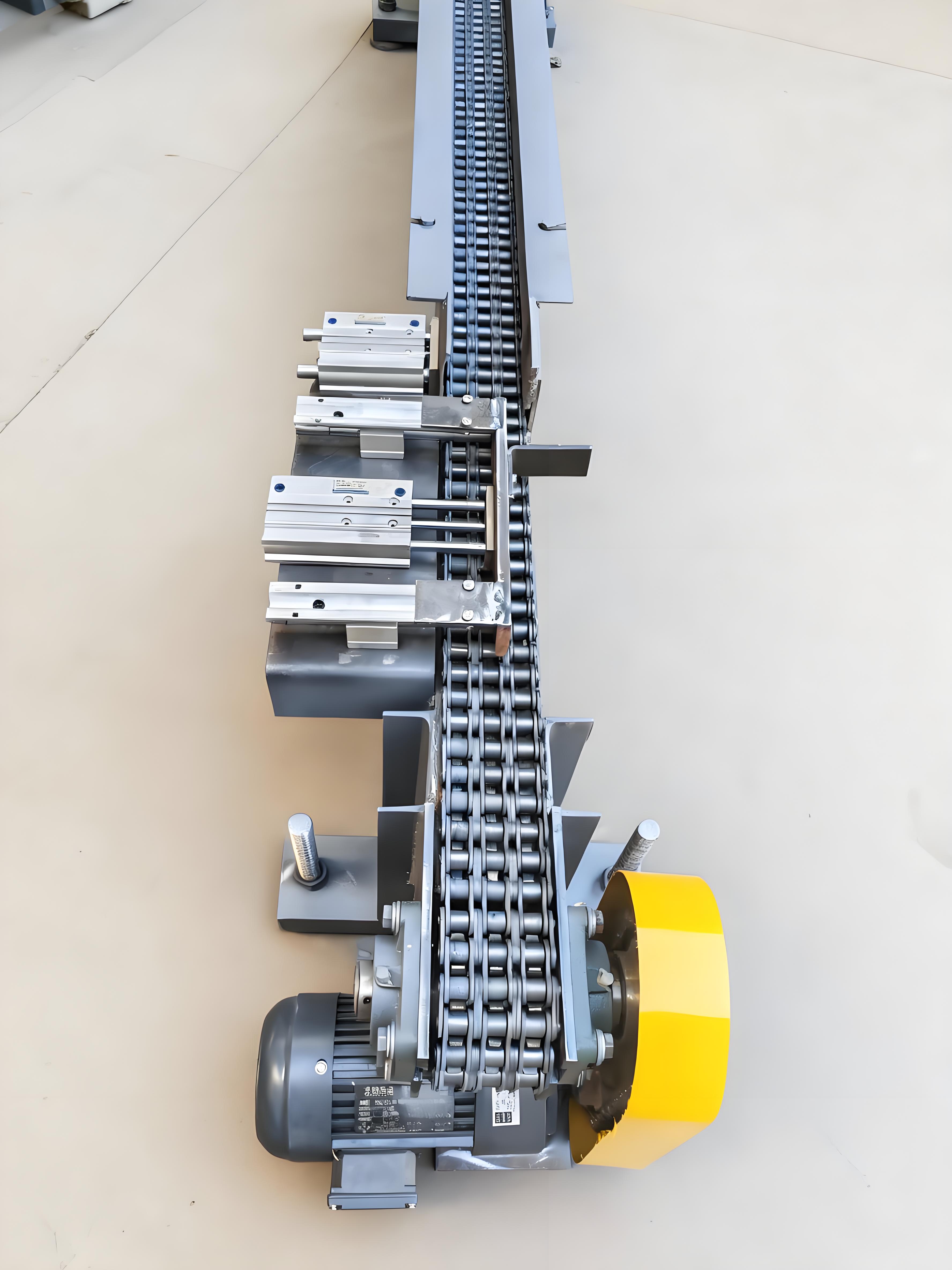 Chain conveyor, also known as speed-increasing chain conveyors or speed-enhancing chain production lines, form a production line commonly referred to as a self-flow conveying system. These systems utilize specially designed, surface-treated extruded aluminum alloy profiles as guide rails, ensuring exceptional stability and durability during material handling. This makes them ideal for continuous mass production of goods. Additionally, the system's flexible and versatile design enables it to serve multiple purposes.