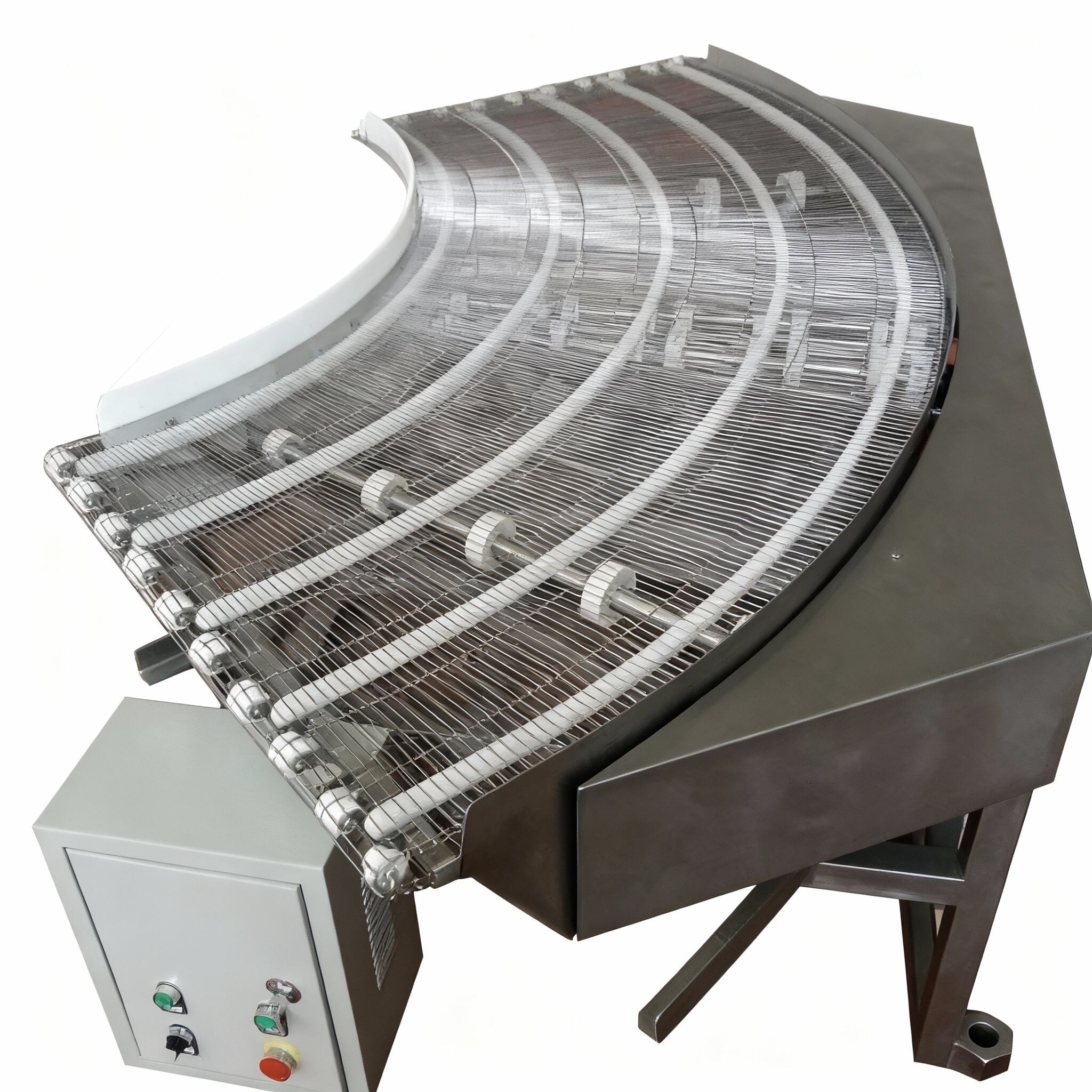 Material of the conveyor belt: primarily stainless steel