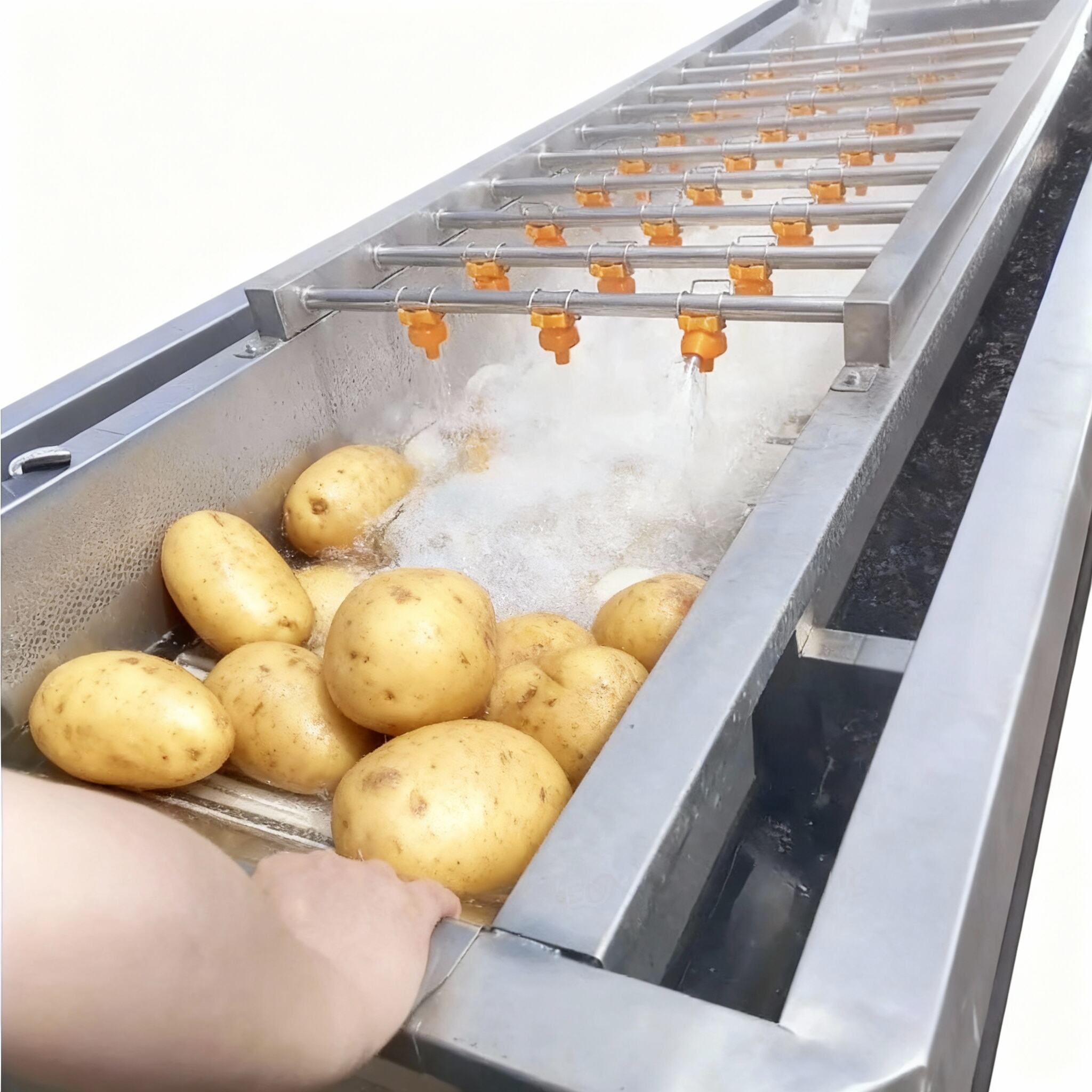 The fruit and vegetable washer is primarily designed for cleaning vegetables, aquatic products, red dates, and jujubes, and can also be used for washing carrots, apples, potatoes, and other tuberous vegetables. It is particularly suitable for fruits and vegetables grown in soil, ensuring high cleaning efficiency while preserving their original color. Additionally, it can be utilized for cleaning various aquatic products and traditional Chinese medicinal herbs, as well as in deep processing production lines for clean vegetables and central kitchen distribution industries.